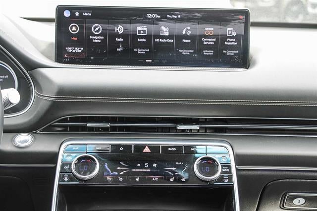 - Radio:14.5" Navigation System w/AM/FM/HD Radio -inc: SiriusXM Radio w/90-day subscription (not available in AK or HI), Apple CarPlay and Android Auto, 12 speakers, Bluetooth® hands-free phone system w/audio streaming, wireless phone charger, Wi-Fi hotspot, steering wheel controls, USB and Genesis Connected Services